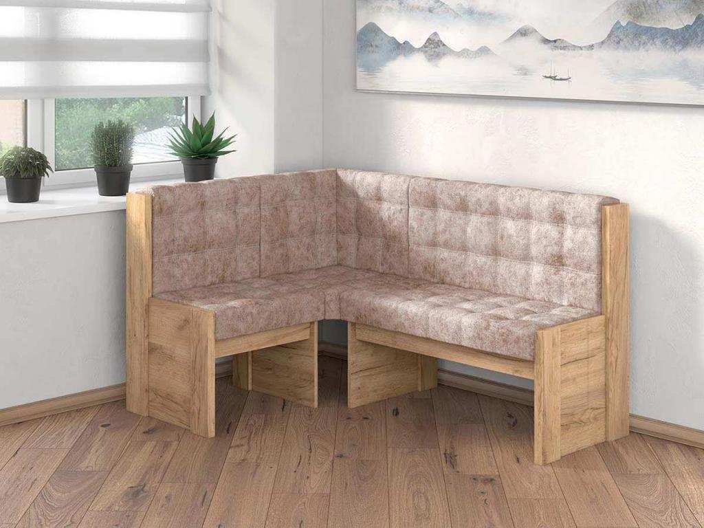 Угловая скамья Квадро дуб Крафт золотой/Латте создаст комфортную зону приема пищи в интерьере современной кухни.