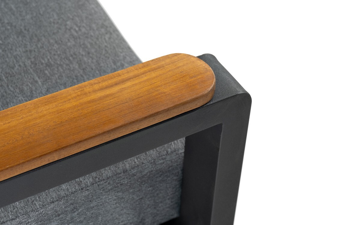 Материал каркаса — легкий и прочный алюминий, который обеспечивает устойчивость и долговечность. Дополняют конструкцию элегантные деревянные элементы, выполненные из массива акации.
