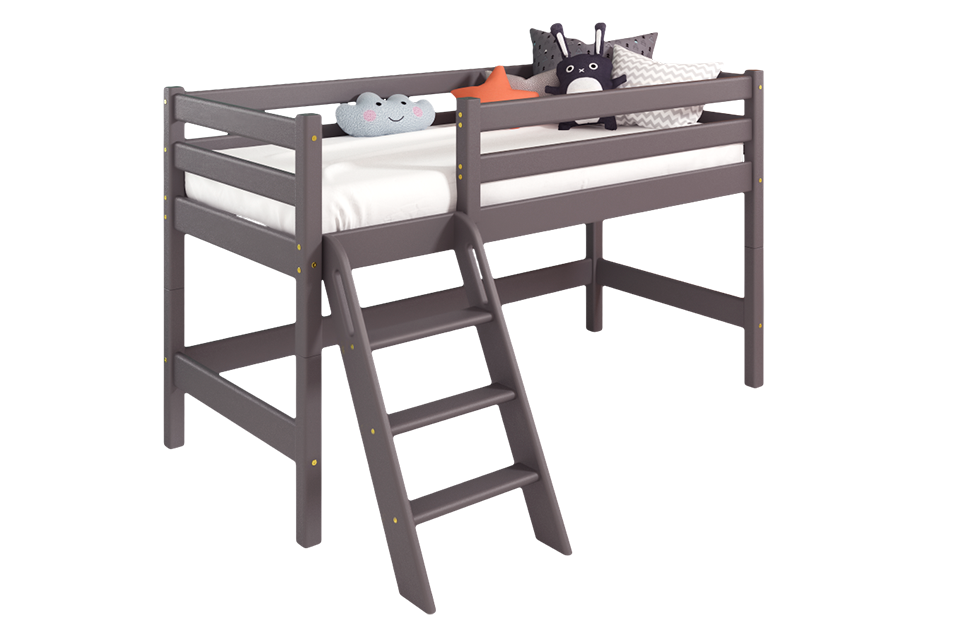 Вариант 12 Низкая кровать «Соня» с наклонной лестницей — один из примеров идеального сочетания практичности, оригинальности и долговечности. Цветовое исполнение подходит сразу для нескольких стилей, а габариты — для комнат разной площади. Мебель для детской создается из безопасных материалов с отличной износостойкостью.