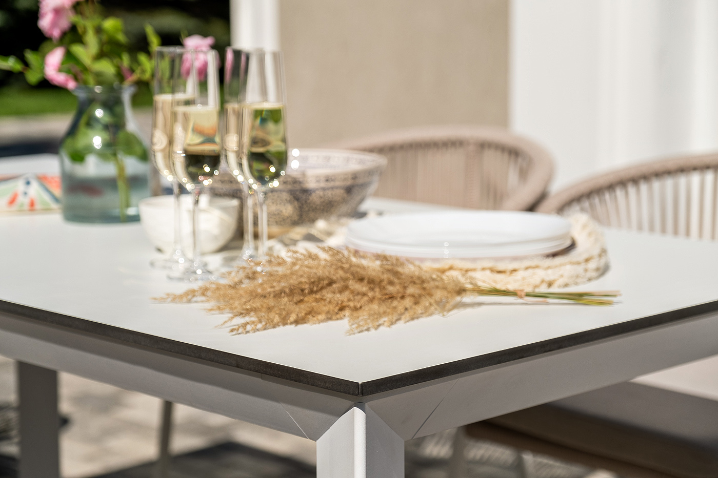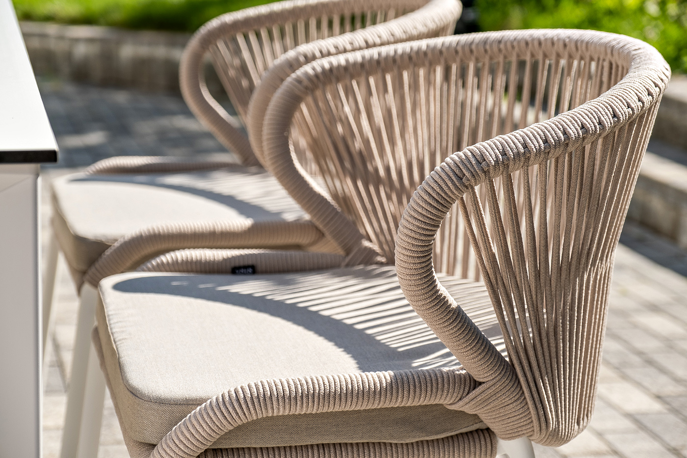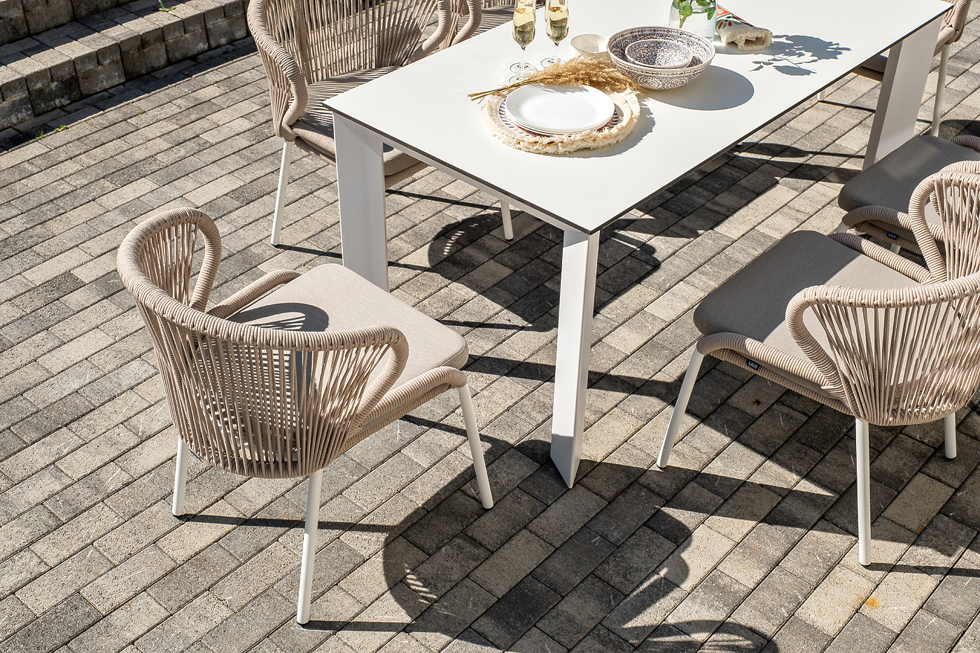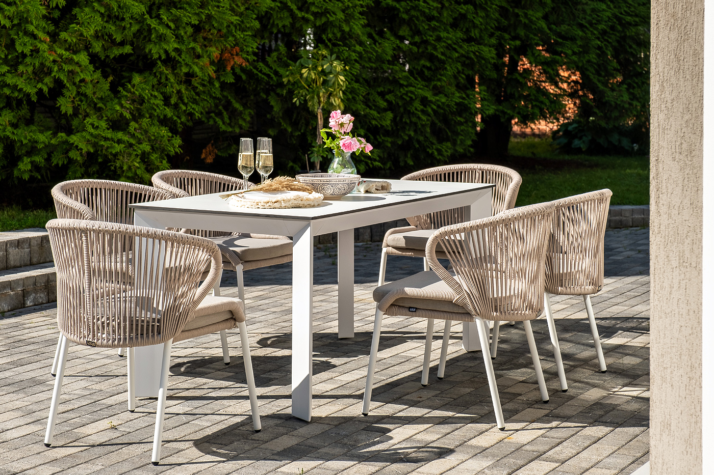 Стол «Венето» оснащен столешницей из надежного HPL-пластика, который обладает высокими показателями стойкости к истиранию, ударам, высоким температурам и влаге, обеспечивая долговечность использования "Венето" обеденный стол из HPL 160х80см, цвет молочный, каркас белый 1шт. 1 600Х800Х750, "Милан" стул плетеный из роупа, каркас алюминий белый муар, роуп бежевый круглый, ткань бежевая 15052 6шт. 600Х660Х810,