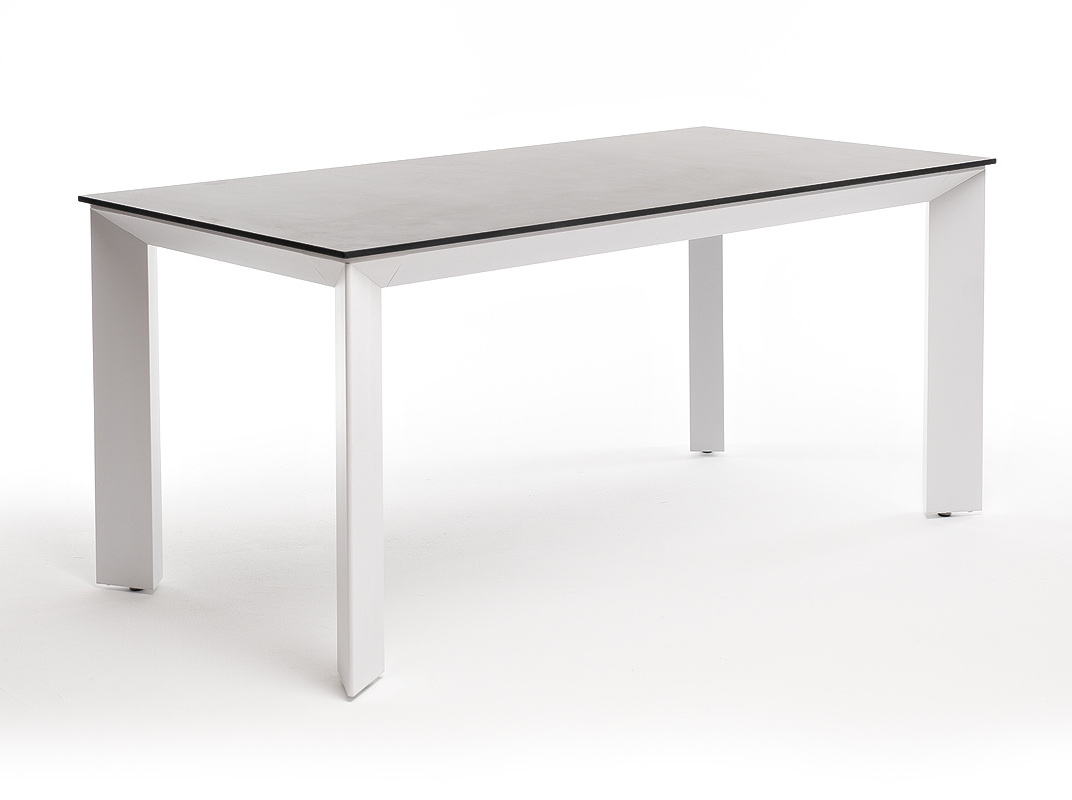 Столешница выполнена из современного высококачественного монолитного компакт-пластик HPL, толщиной 12 мм в цвете «серый гранит». Материал устойчив к высоким температурам, попаданию влаги и может использоваться как в помещении, так и на открытом пространстве. Подстолье изготовлено из крашеного алюминия белого цвета.