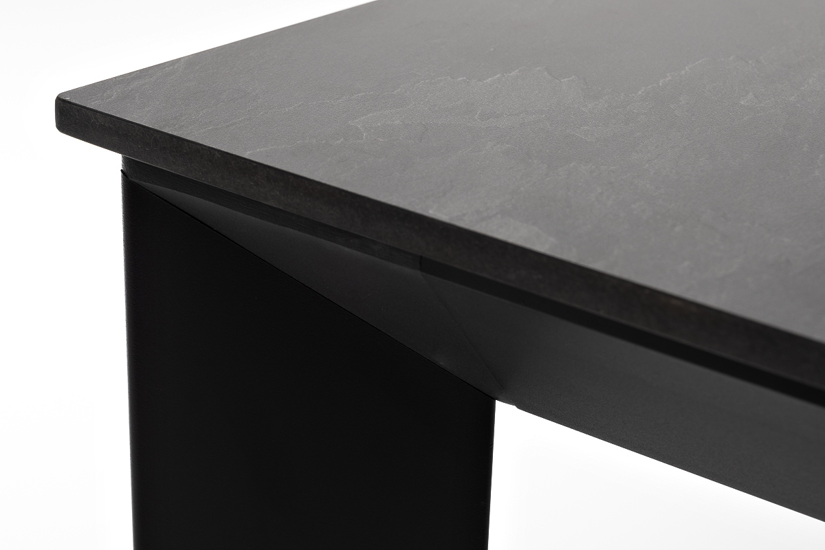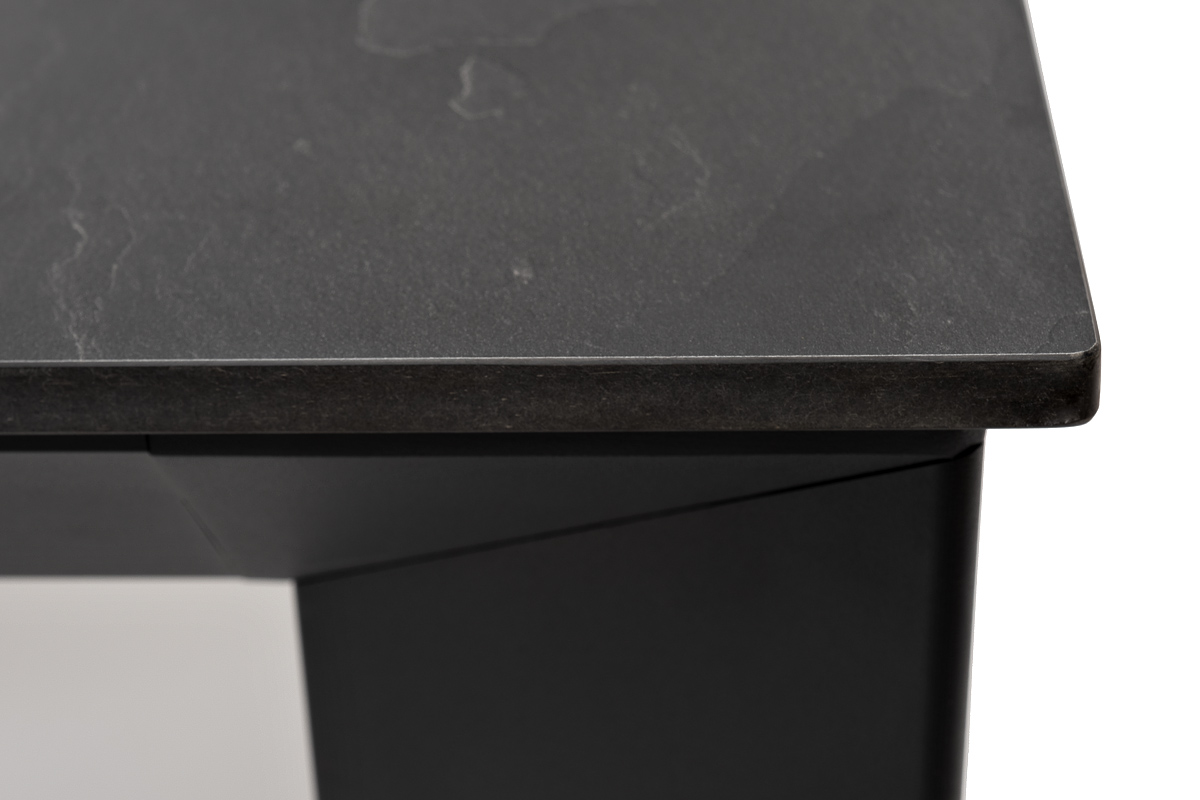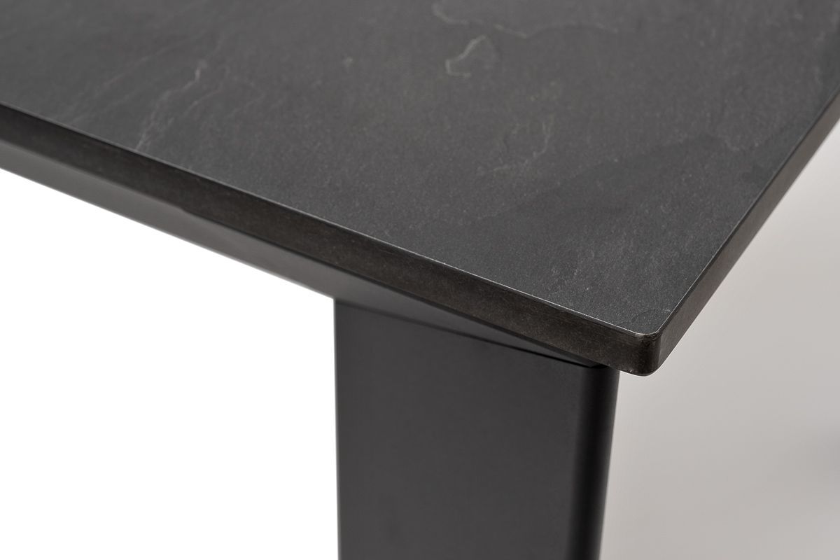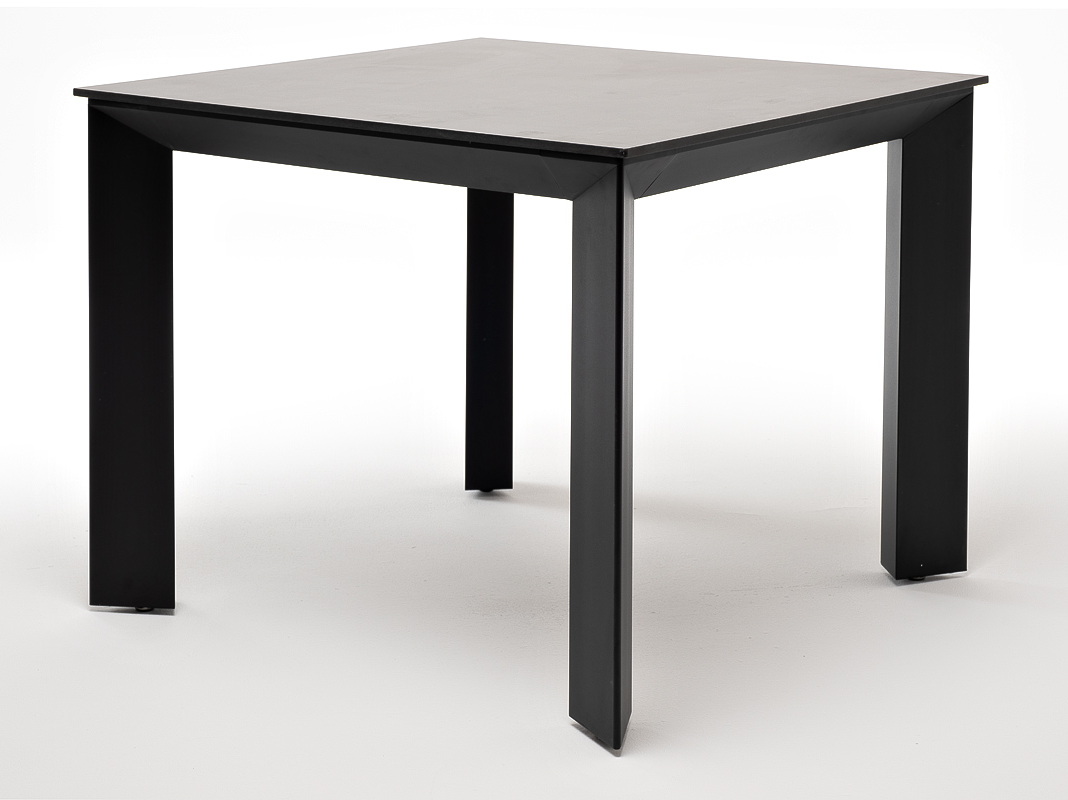 Столешница выполнена из современного высококачественного монолитного компакт-пластик HPL, толщиной 12 мм в цвете «серый гранит». Материал устойчив к высоким температурам, попаданию влаги и может использоваться как в помещении, так и на открытом пространстве. Подстолье изготовлено из крашеного алюминия черного цвета.