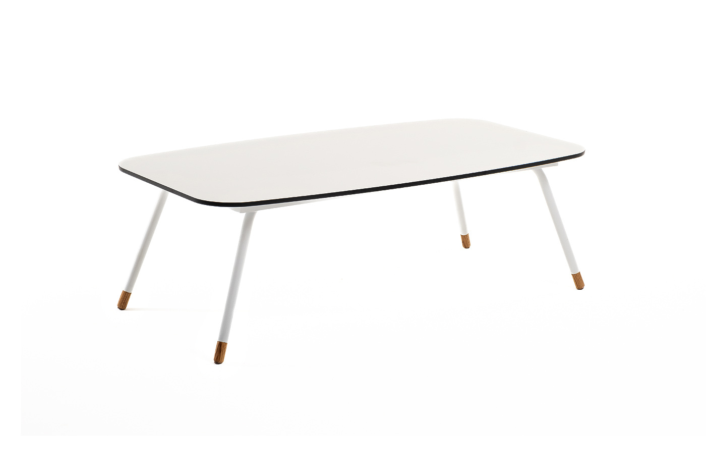 Каркас столика изготовлен из алюминия, окрашенного в белый цвет. Алюминий является легким и прочным материалом, что обеспечивает долговечность и надежность изделия. На ножках столика идут дубовые наконечники (заглушки).