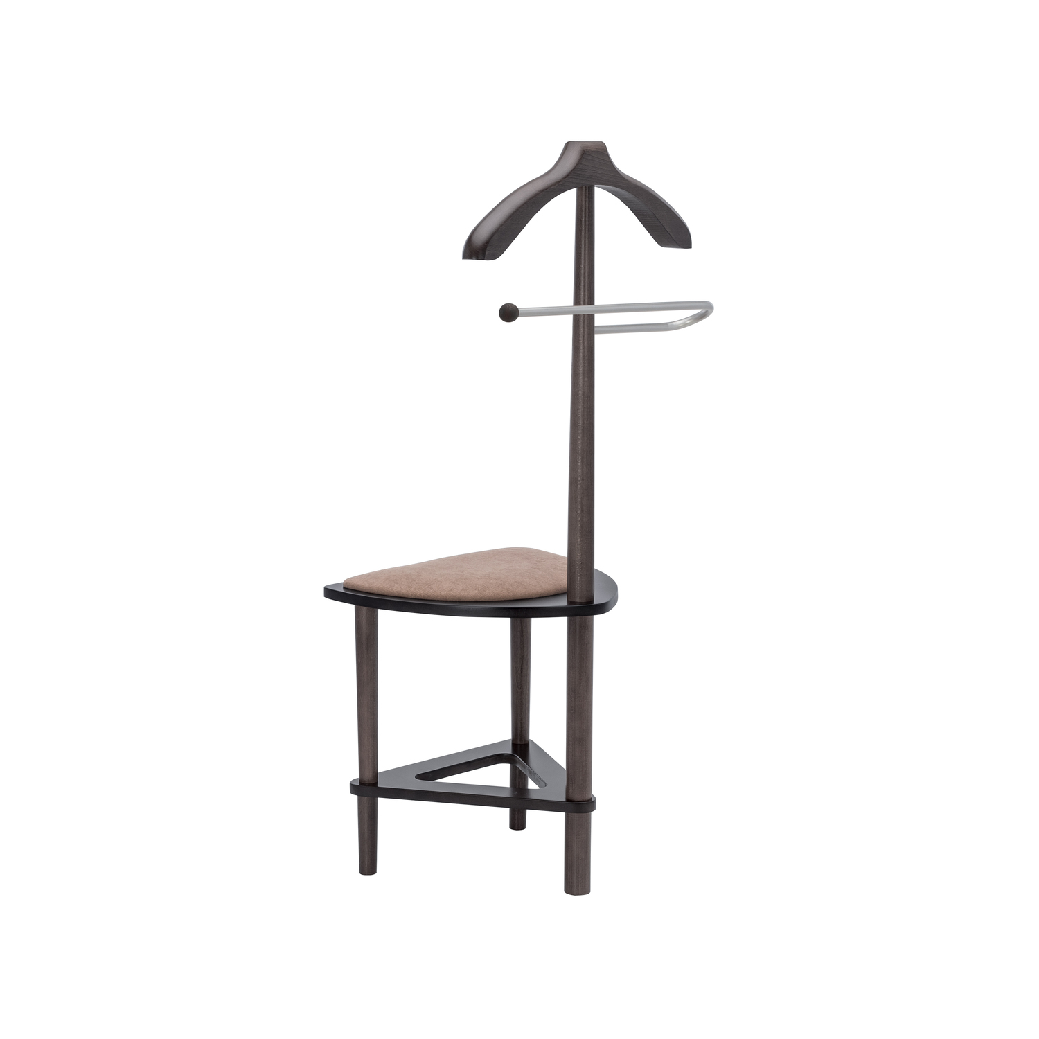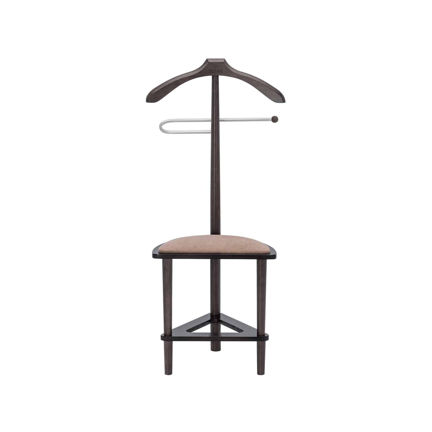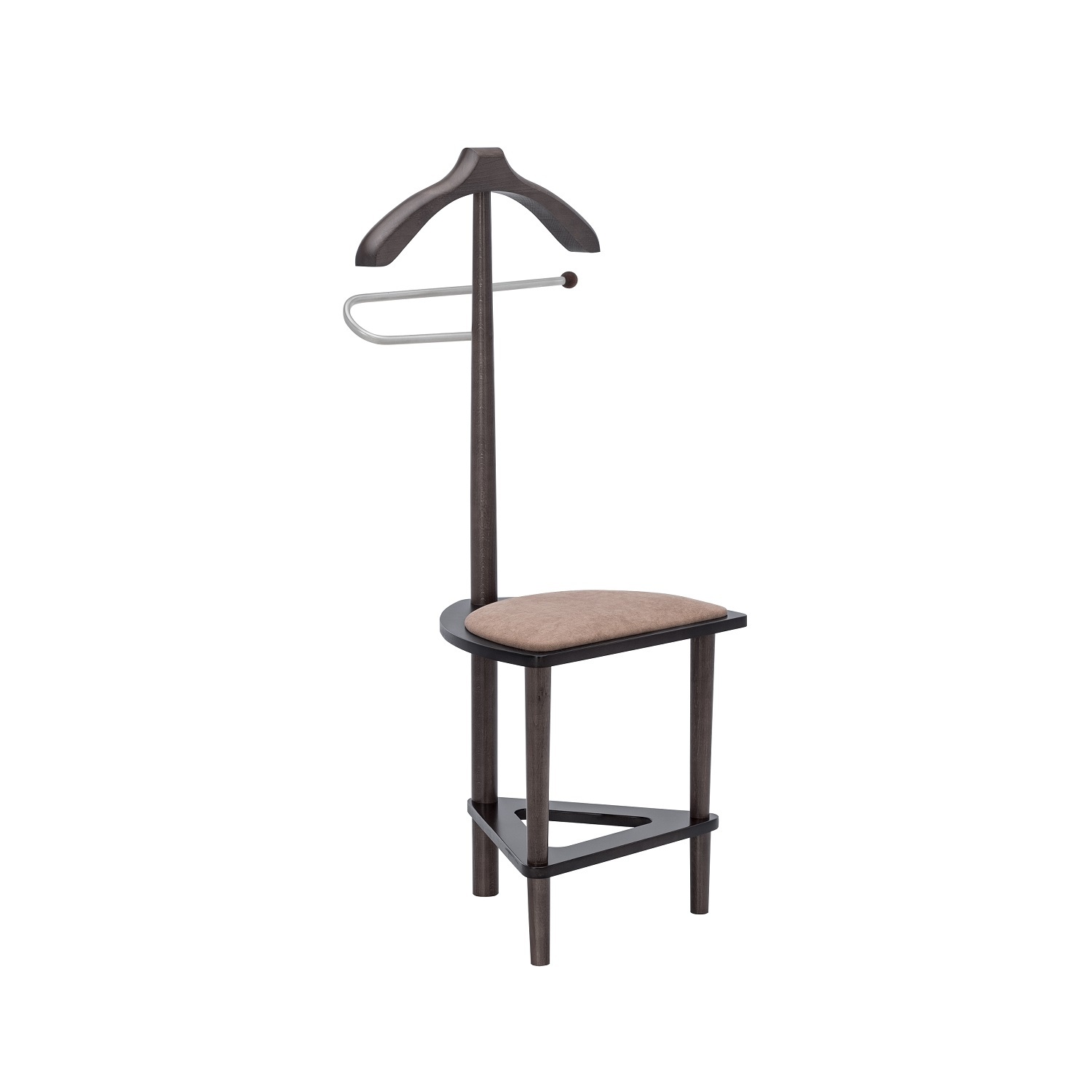 Плечики изделия и ножки изготовлены из массива бука, основание сиденье – МДФ, мягкий элемент: ткань микровелюр Candy mocco. Изделие покрыто высококачественным итальянским шелковисто-матовым лаком. Данная модель может использоваться не только, как вешалка, но и как стул, который способен выдержать нагрузку до 120кг. Металлическая трубка придает вешалке изящности, прекрасно гармонирует с общим видом изделия. На трубку возможно повесить брюки, юбки, ремни. Подойдет для использования как в стильной комнате, так и в прихожей.