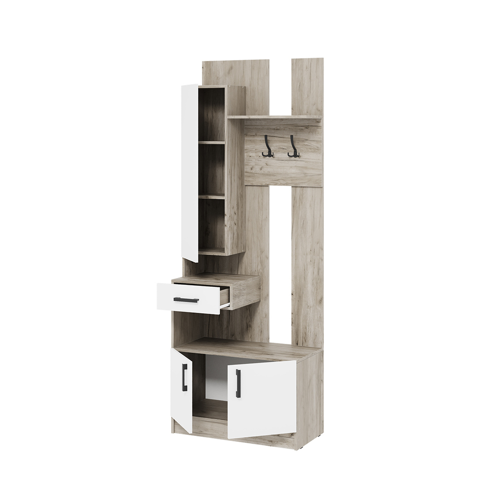 Благодаря стильному дизайну и компактным размерам вешалка Вега впишется в малогабаритную прихожую или квартиру-студию. Наличие полок, надежные крючки и ниша под обувь позволят разместить верхнюю одежду, уличную и домашнюю обувь, сезонные аксессуары и головные уборы, а наличие мягкого сидения добавит комфорта от ежедневных сборов перед выходом на улицу.
