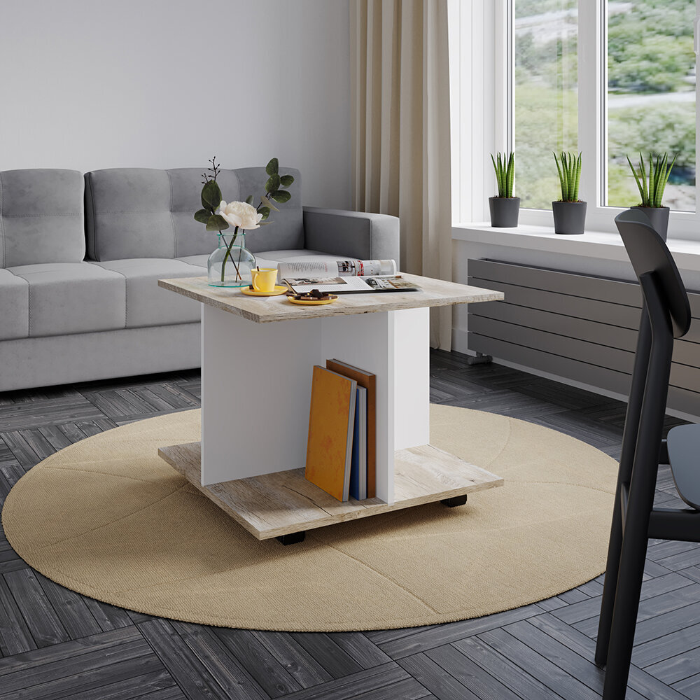 Журнальный стол Консул-10 - компактное решение для гостиной в современном стиле. Выполнен в универсальном белом декоре с эффектными древесными поверхностями. Рекомендуем использовать стол строго по назначению: не становиться и не садиться на него.